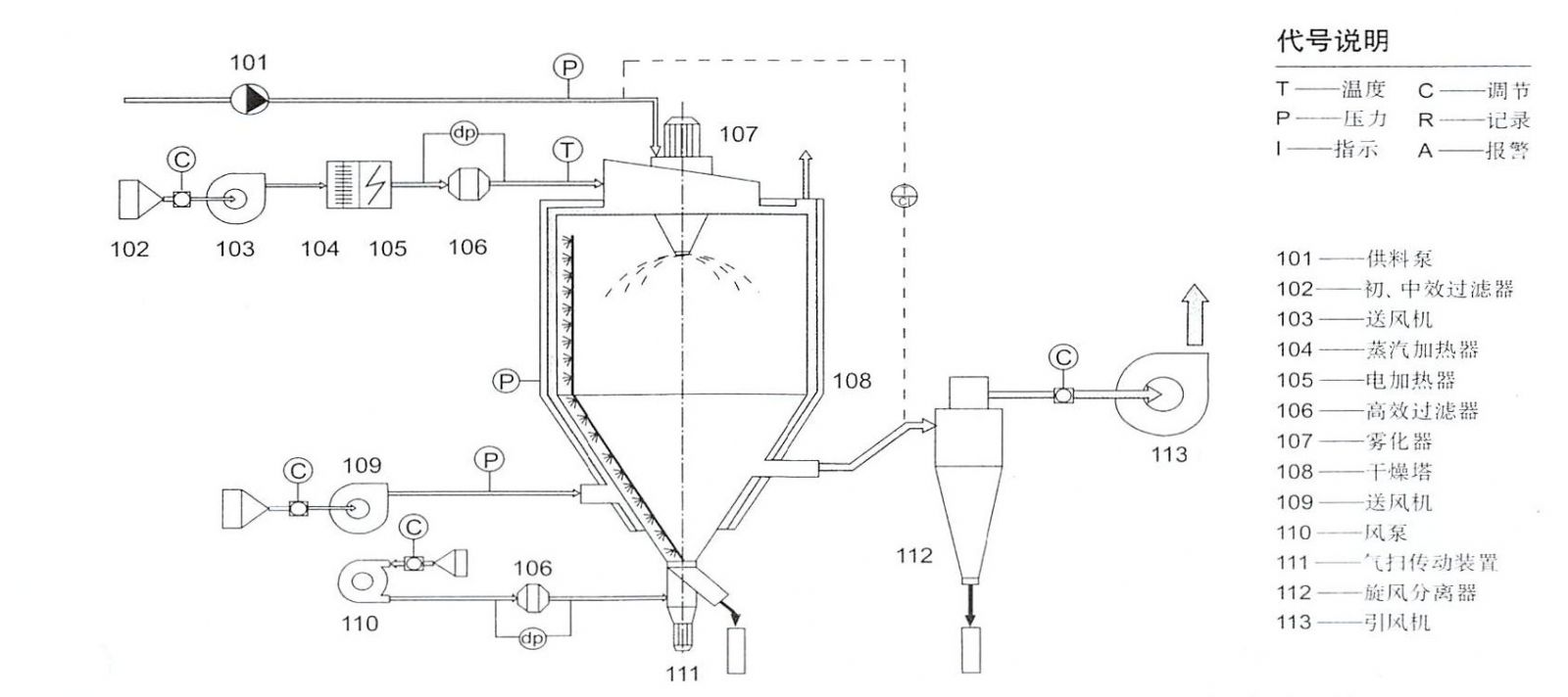● 采用了三級空氣凈化,使進入燥系統的熱空氣達到萬級凈化要求。采用了氣掃和夾套冷卻雙層保護裝置,降低了產品的粘壁、焦化和吸濕現象,保證產品質量和回收率。