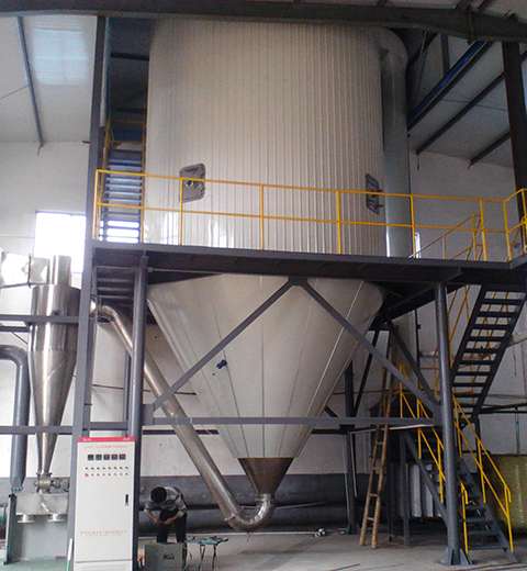 潔凈空氣冷卻后進入制粒塔,在塔內使用離心造粒專用噴頭,通過變頻調速將各種料液霧化成所需要的微小液...